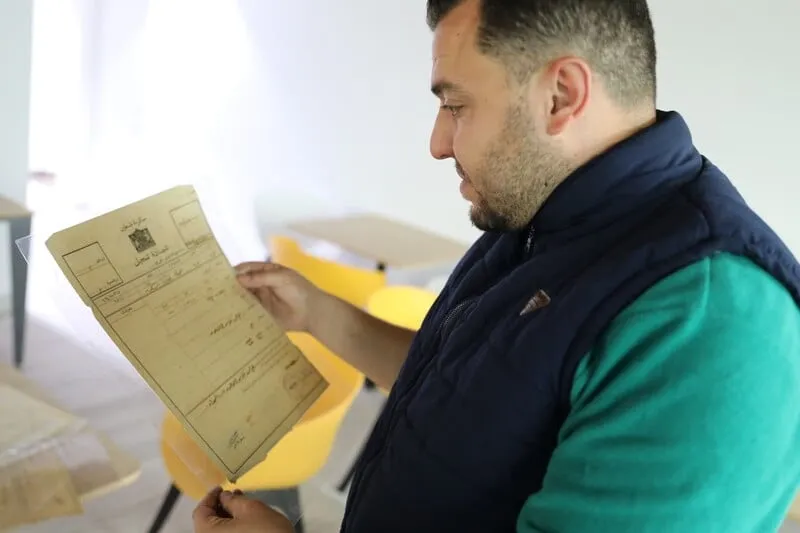 Image: Adam al-Madhoun with his grandfather’s British-era deed. (Mohammed Al-Hajjar)7