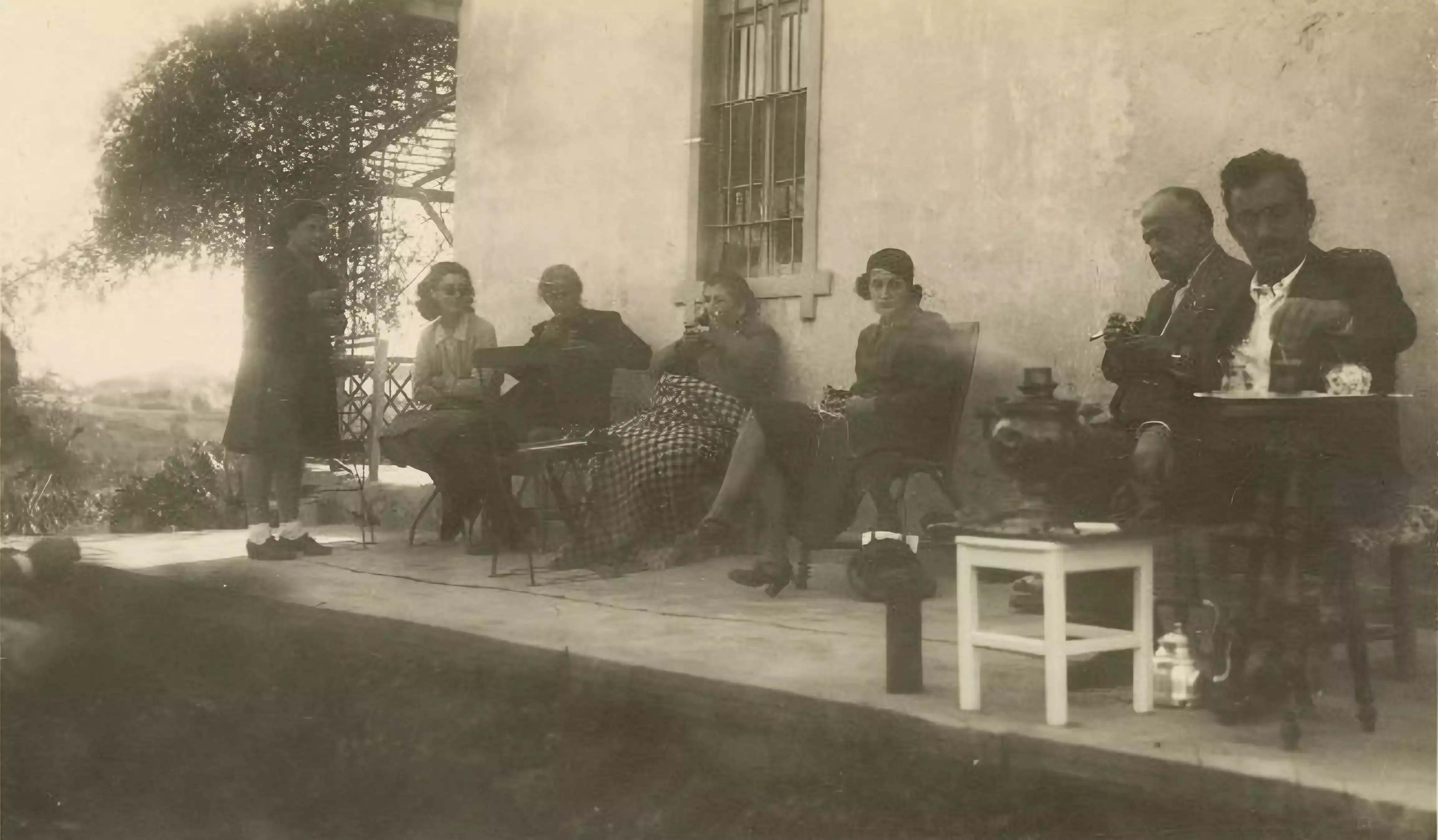 Image: Khalil Sakakini and his family behind the house of Sakakini at the Katamon Neighbourhood in Jerusalem, prior to their expulsion.3